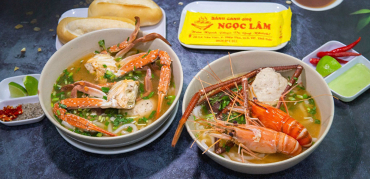 Sợi bánh canh trắng trong, dai đàn hồi kết hợp cùng nước dùng sánh mịn, vàng óng từ gạch ghẹ là điểm thu hút của quán Ngọc Lâm.