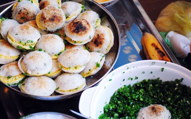 2. Bánh căn trứng gà: Trứng gà đập vào, chiên vàng