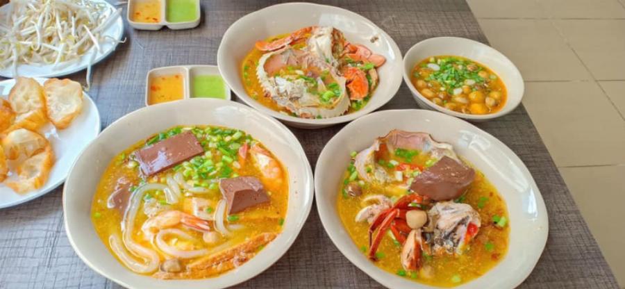 | Topping | Cua đồng tươi, thịt vịt xiêm, cá lóc đồng | Cua biển, tôm, giò heo, chả cá |