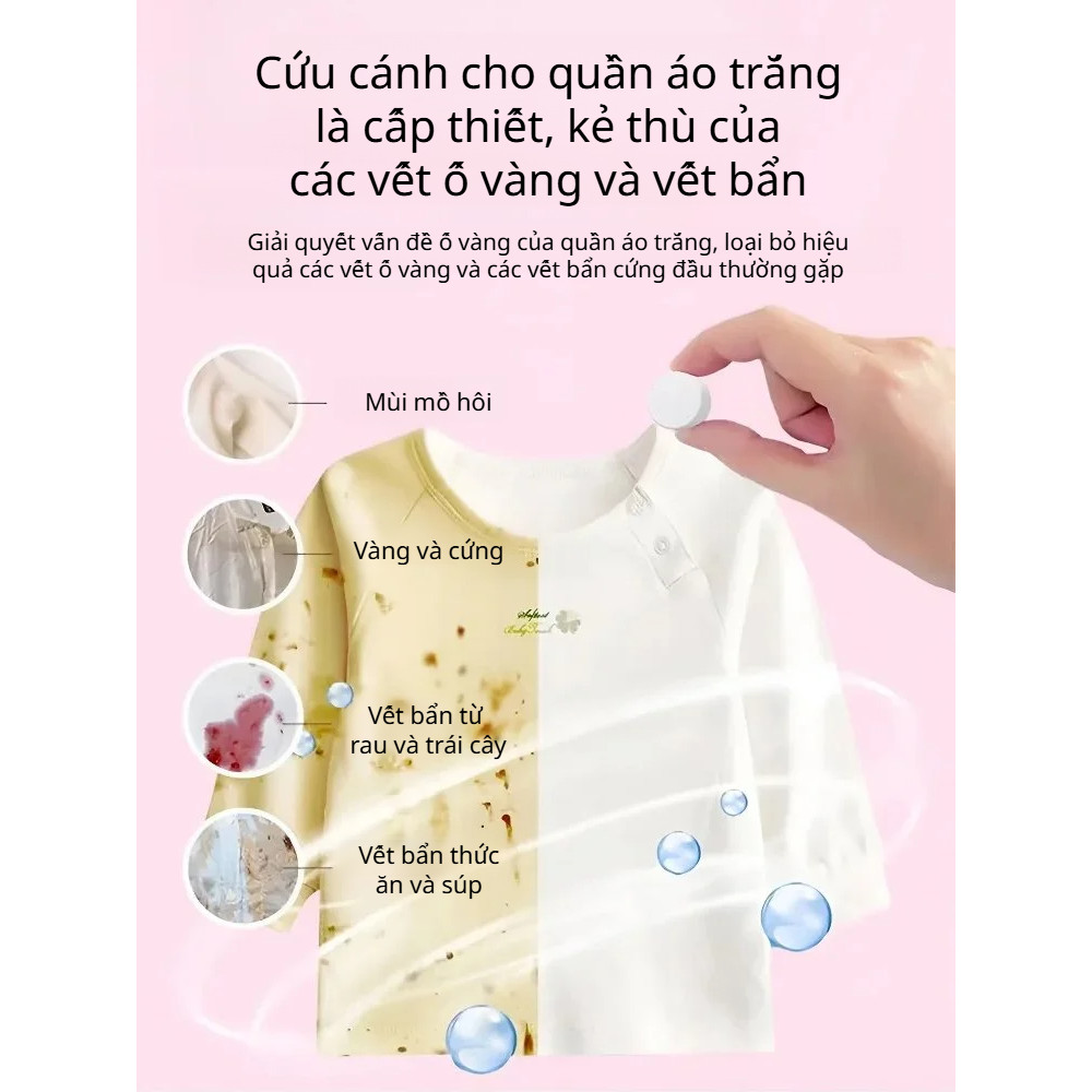 - Cách thực hiện: Hòa tan 2-4 viên nén vào chậu nước ấm, sau đó ngâm áo bị ố vàng vào dung dịch này qua đêm (khoảng 8-12 tiếng).