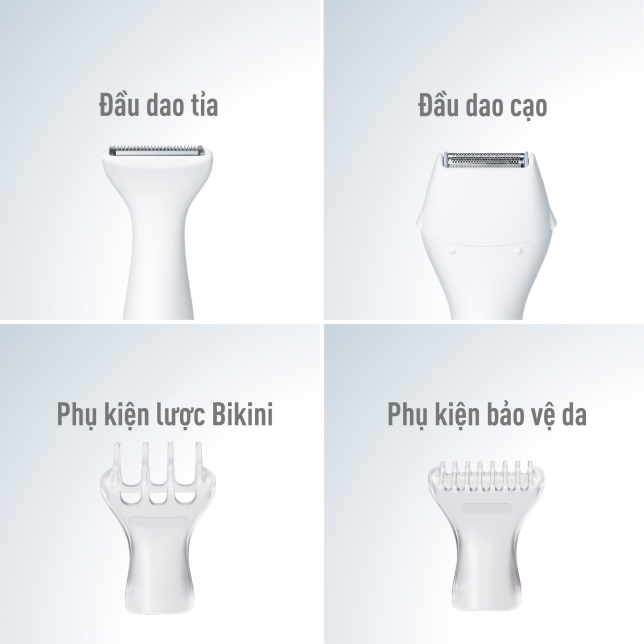 - Đặc điểm: Đầu cạo 3 trong 1 (lưỡi thẳng cho tay chân, lưỡi cong cho nách, lưới bạc cho lông ngắn).