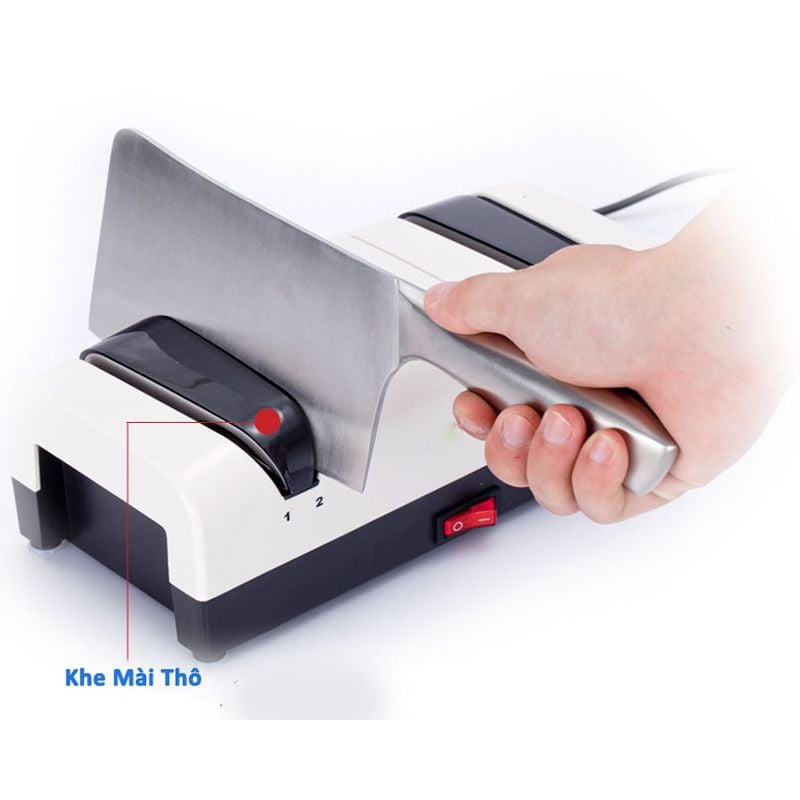 - Góc mài cố định: Một chiếc máy mài dao kéo gia đình tốt cần có khe mài cố định góc (thường là 15-20 độ) để đảm bảo lưỡi dao được mài đều hai mặt.