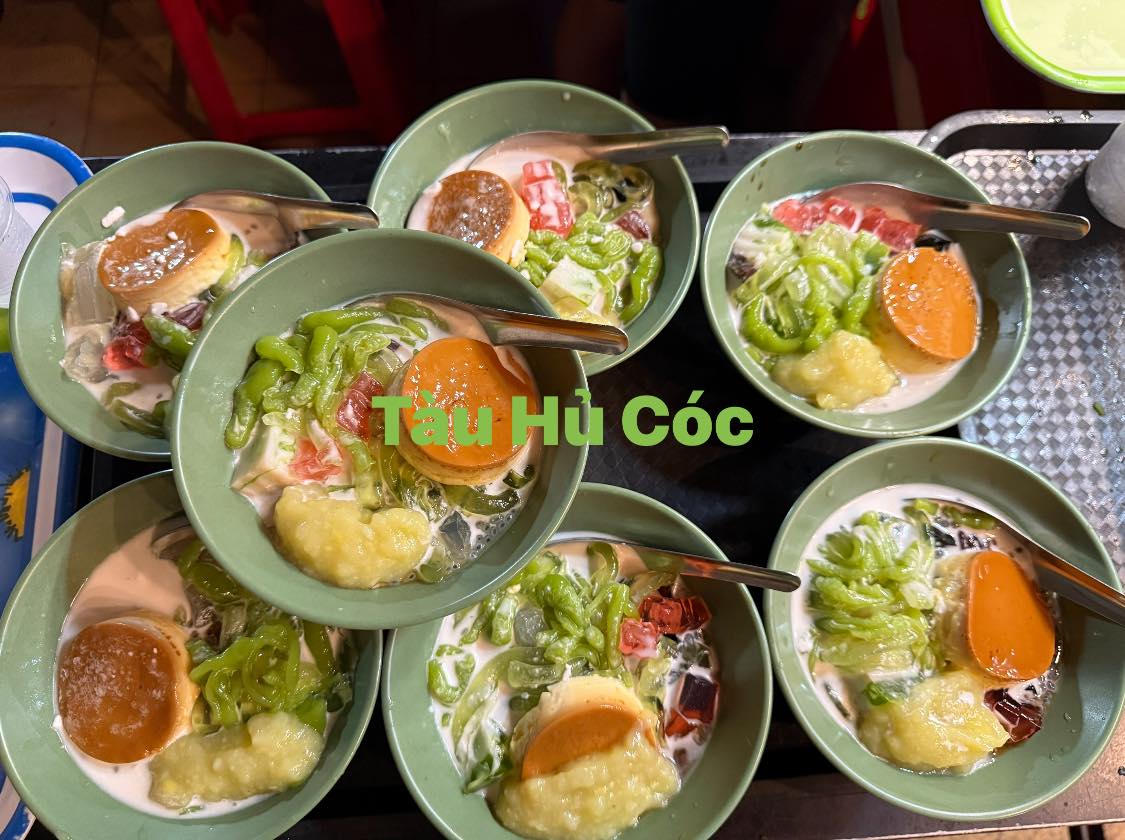 Tàu Hủ Cóc là quán vỉa hè phong cách “cóc” (ghế nhựa thấp), ngồi đường phố, món đặc biệt là tàu hủ thập cẩm topping flan.