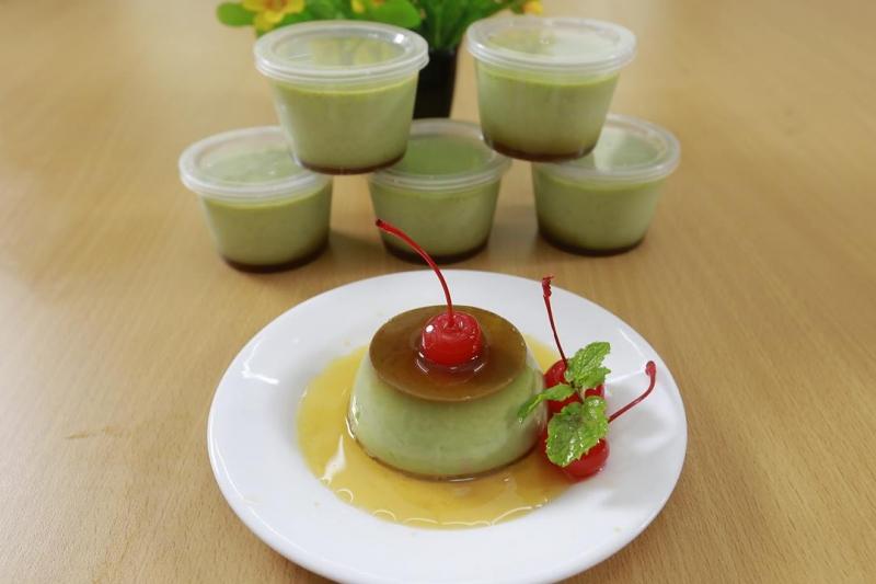 - Flan trà xanh: màu xanh mát, vị trà Nhật nhẹ