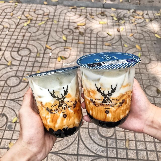 - Chất lượng: Dù giá thành cao, nhưng The Alley vẫn giữ phong độ ổn định nhất. Trân châu (Deerioca) được làm thủ công, có độ dai vừa phải và mùi thơm đường đen rất “sang”. Sữa tươi ở đây béo nhẹ, không bị loãng.