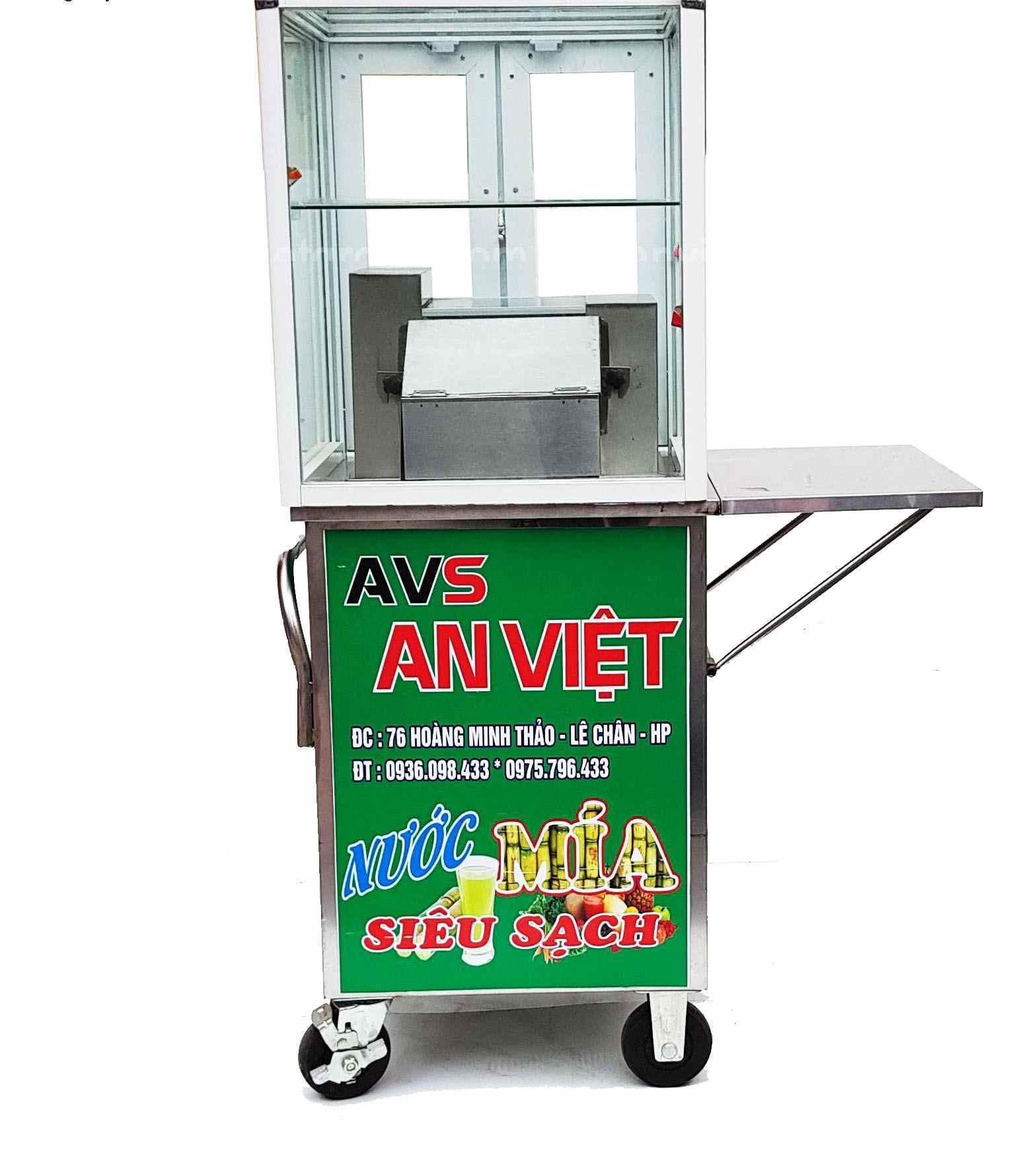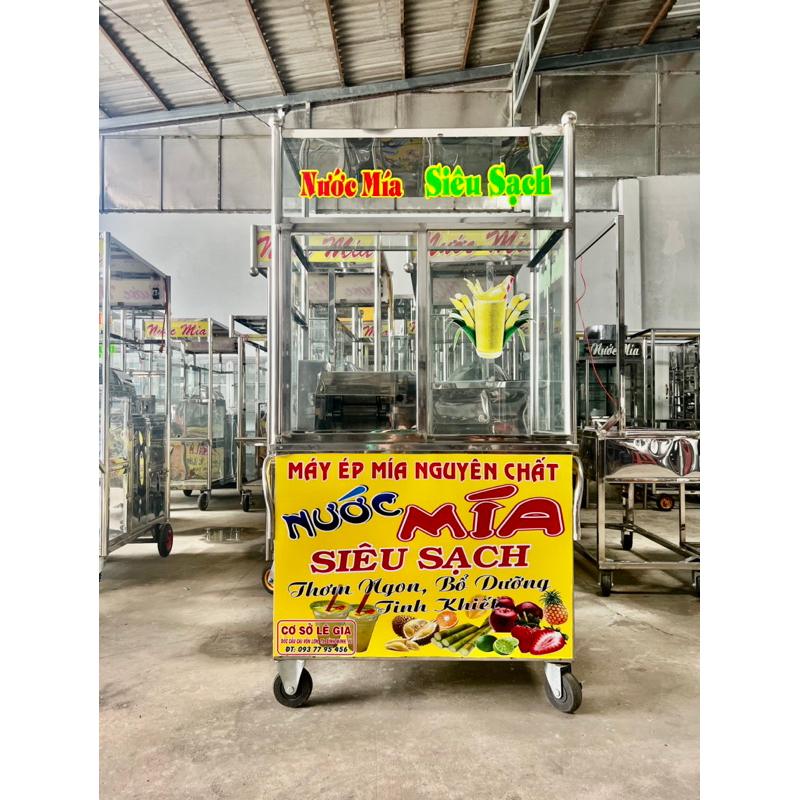 - Xe nước mía tủ kính có bánh xe: Đây là dòng bán chạy nhất nhờ có không gian trưng bày mía sạch, ly nhựa và máy ép miệng ly ngay trên xe, thuận tiện di chuyển qua các cung đường.